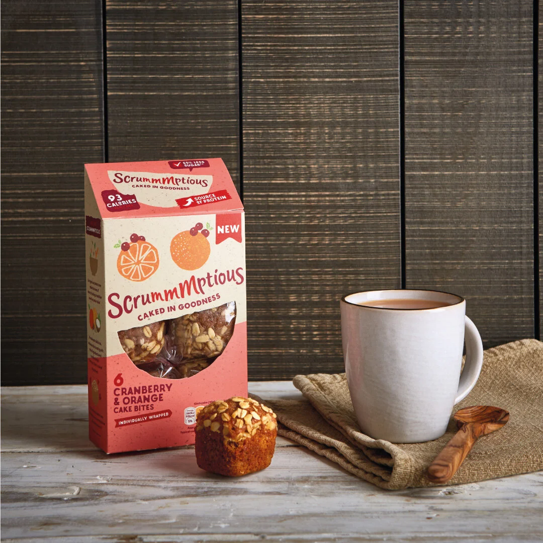 Scrummmptious says ‘I’ll tickle your tastebuds as well as ticking all the boxes.’ It doesn’t preach, but it does reassure. It satisfies those cake-cravings without the guilt! From zero to over 400 Tesco stores nationwide, Scrummmptious are also in talks with other major supermarkets as the brand continues to grow.